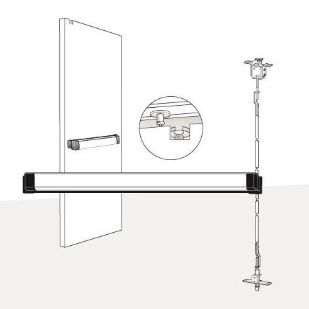 3600 Series Fire-Rated Concealed Vertical Rod Exit Device: Designed for hollow metal applications that require a fire-rated exit device with concealed vertical rods for two-point locking.